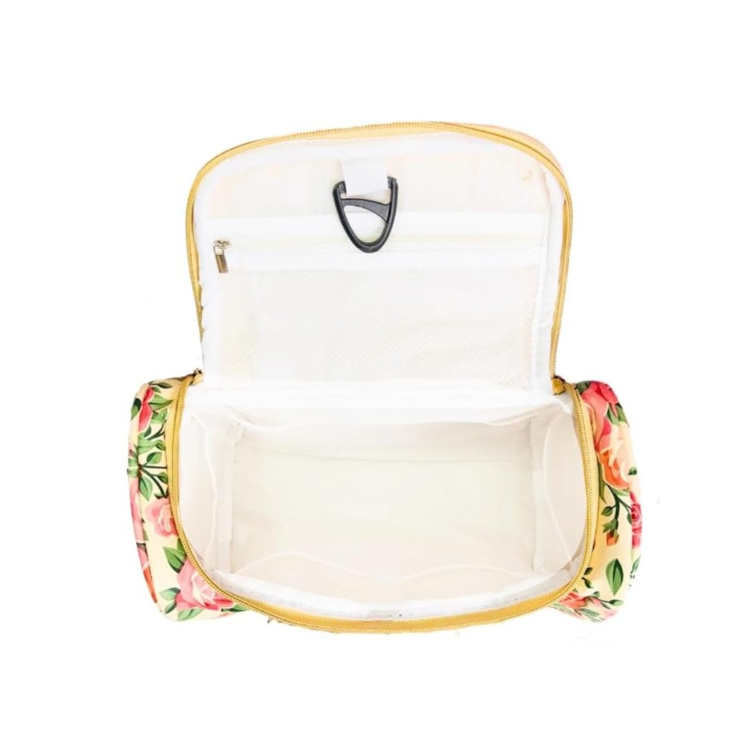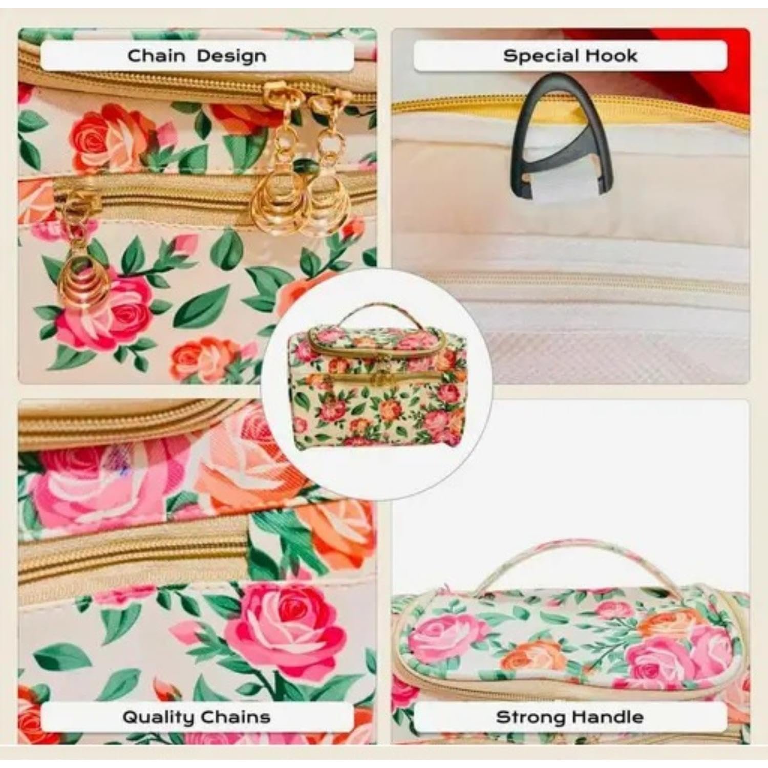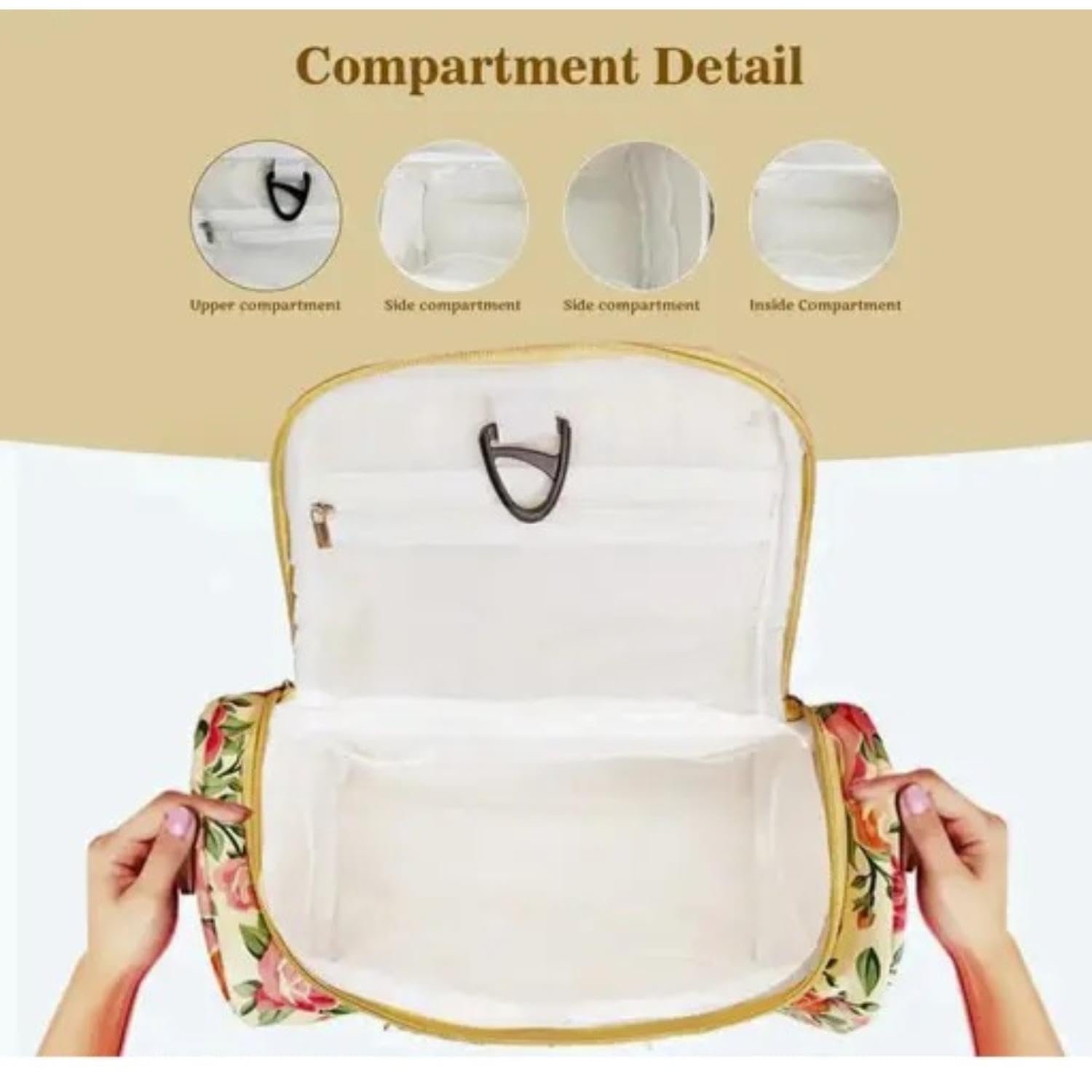 Hanging Travel Toiletry Bag for Men & Women | Water-Resistant Cosmetic Organizer with Mesh Pockets & Hook | Floral Design Travel Kit (Floral Beige)