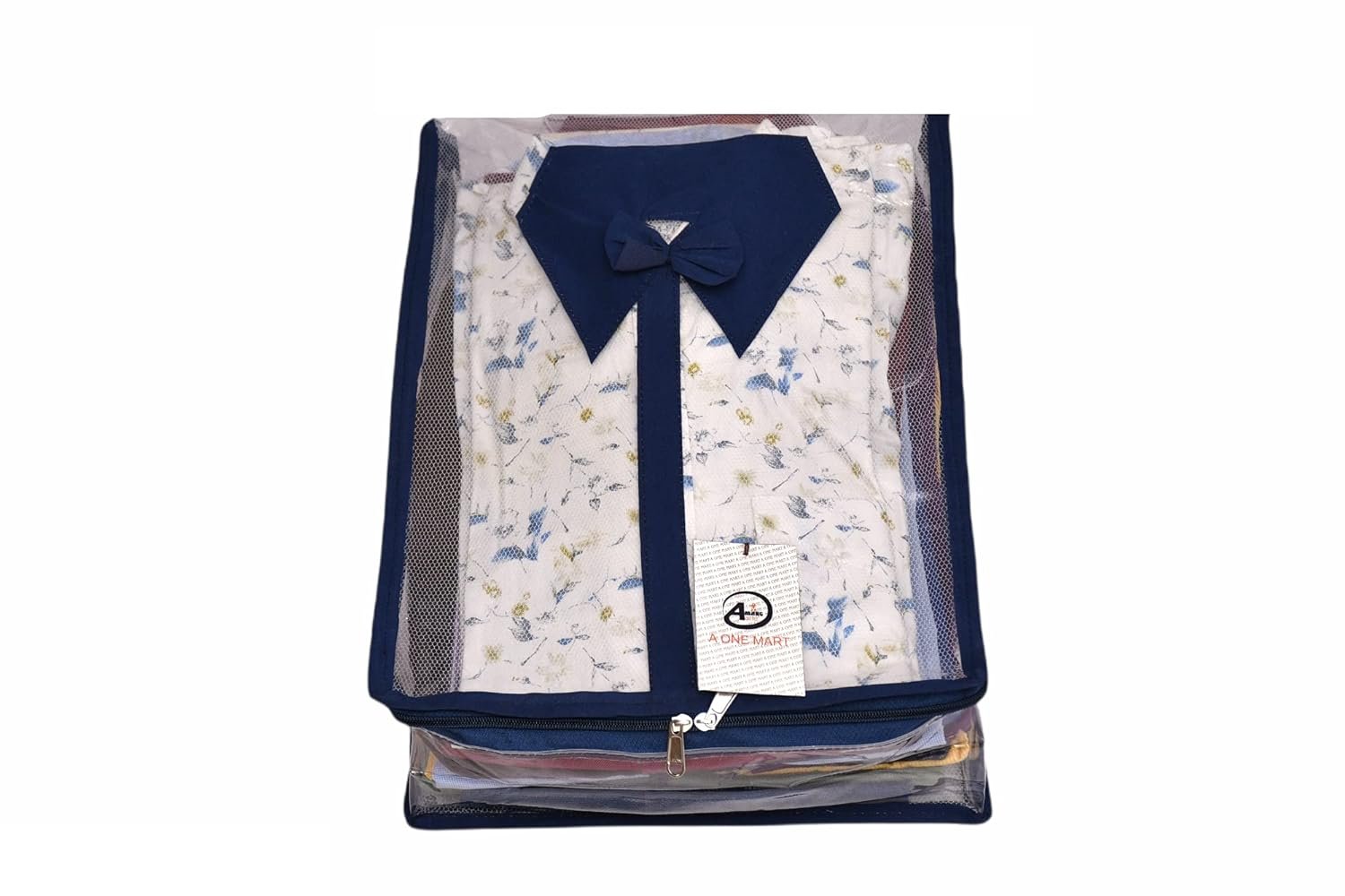 UPAN Heavy Quality Plastic Designer Bow Standard Shirt Cover Transparent Set of 1 Pcs Blue Colour
